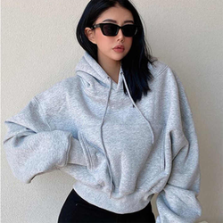 New Arrival Cozy Oversized Pullover for Women Vintage Enzyme Acid Washed Sweatshirt Embroidered Drop Shoulder Winter Breathable