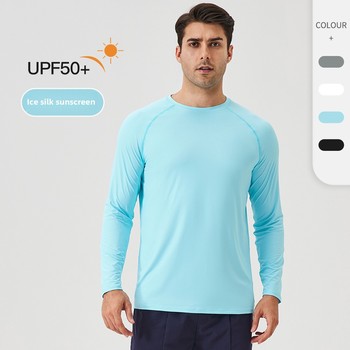Wholesale Lulu Men's Ice Silk Long Sleeve T-Shirt Breathable Knitted Fitness Casual Top Sun Protection for Outdoor Sports Loose