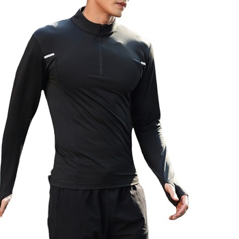 เสื้อสเวตเตอร์แขนยาวมีซิปสำหรับผู้ชาย, เสื้อออกกำลังกายแขนยาวคอตั้งยืดหยุ่นสำหรับเล่นกีฬาฟิตเนสฤดูใบไม้ร่วง